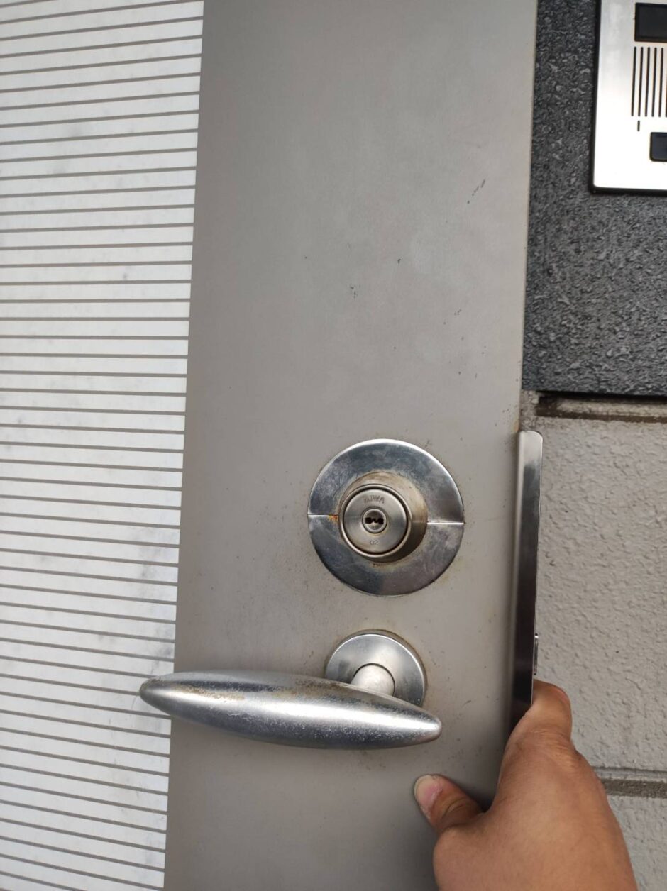 本来、解錠に力は入りません。適切な角度でピンポイントでサムターンを引っかければ、サムターンは回ってくれます。ですが、例えば今回のようにカギが引っかかるからといって、カギ穴やデッドボルトやラッチに満遍なくクレ556を挿していると、かえって油は固まり開閉しづらくなります。カギが引っかかりはじめたら、シリンダー内のピンが摩耗しているので、カギ折れしないように早めにシリンダー交換を行ないましょう。
